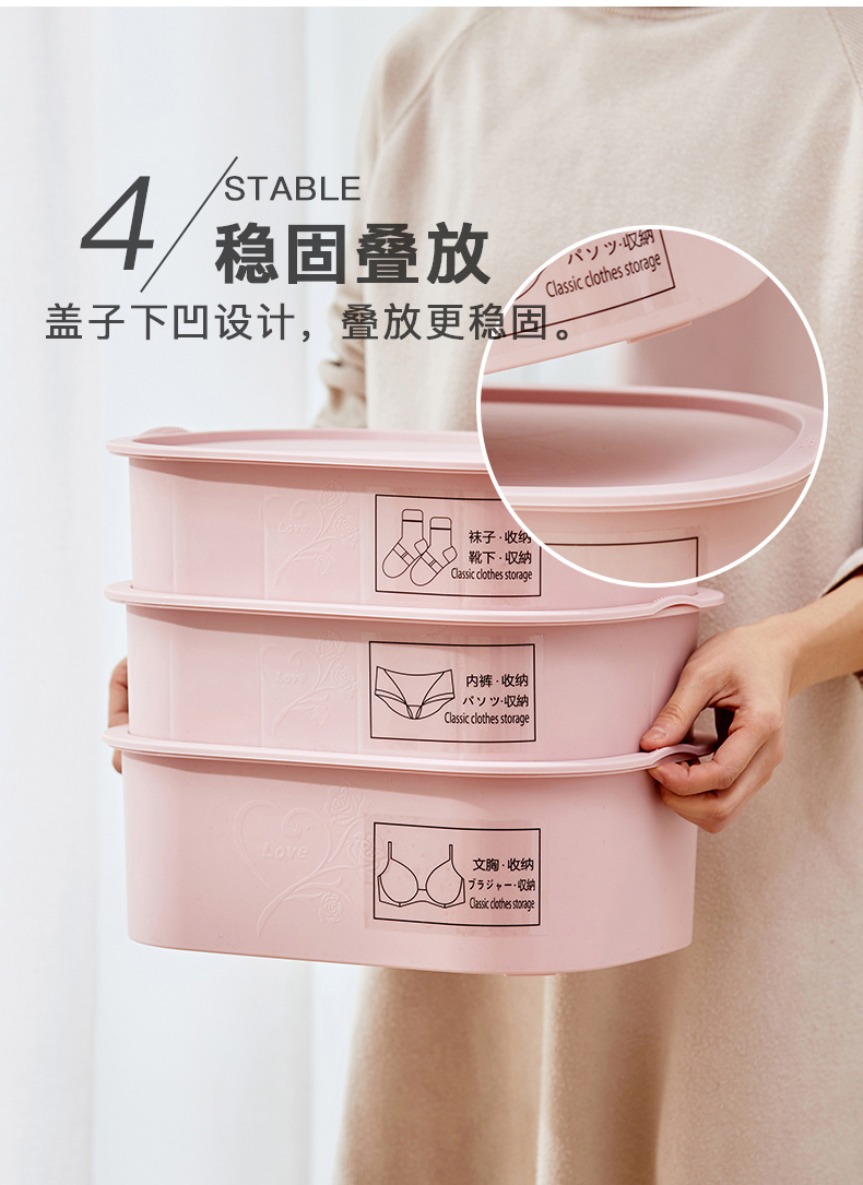 家用プラスチックの蓋付きのショーツ収納ケースです。三合一分のストッキングの収納ケースです。