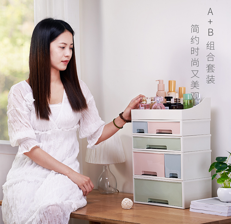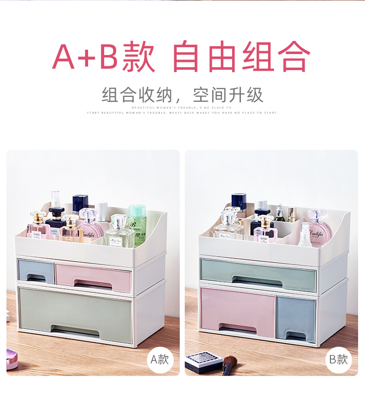 【佳佰収納箱】佳佰デスクトップ化粧品収納箱防塵デスクの引き出し式ドレッサー化粧箱整理ケース3点セットの化粧品棚9103【相場見積り価格評定】-京東