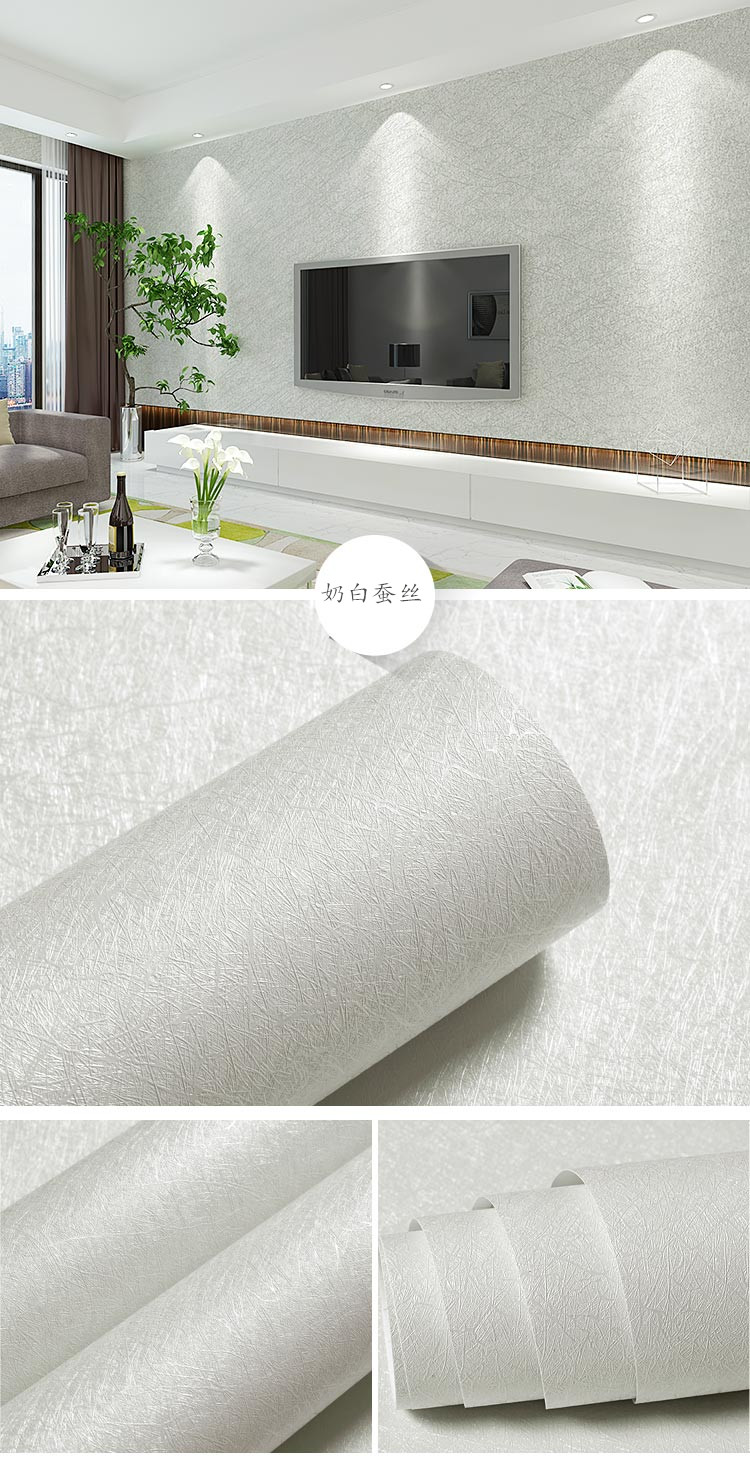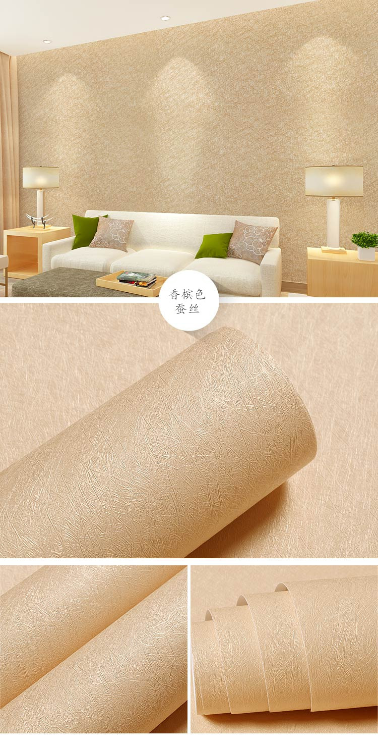 万域の現代簡単な西洋式は厚いPVCをプラスして壁の紙にくっつきます。寝室の書斎のテレビの背景の壁のシールの米黄の絹糸の0.6*5メートル