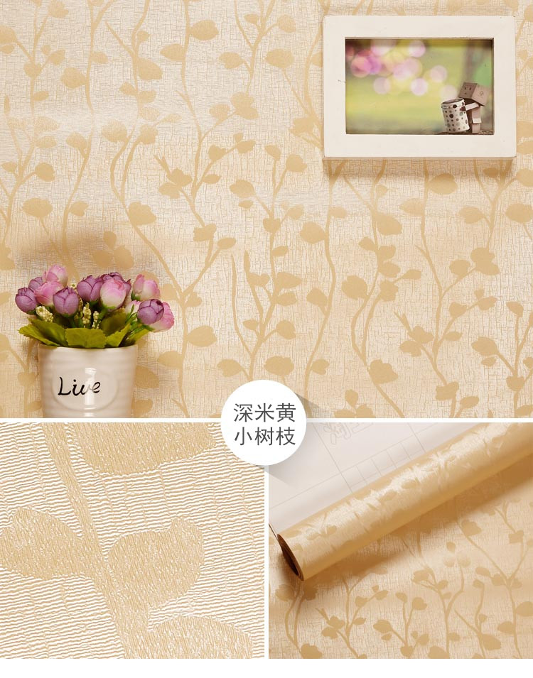 万域現代簡単欧米式加重PVC自然粘壁紙テープテープテープテープテープテープ付き寝室書斎テレビ背景壁シール米黄シルク0.6*5メートル
