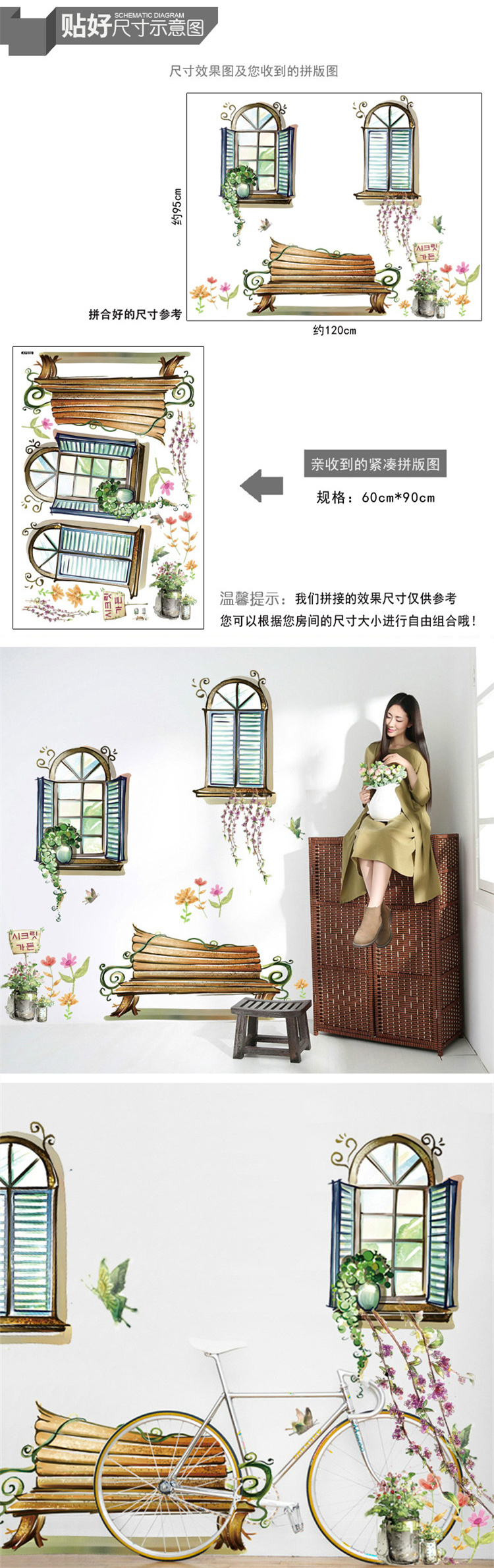 吉備芸ロマンチックな寝室のアイデアは壁の壁に壁を貼る壁のステッカーを貼って、自分でピンクの少女の心の部屋の寮のベッドの上の暖かい壁紙の壁画の後ろ姿の女の子+復古のにせの窓の特大【図の価格のブランドのオファー】を貼り付けます。