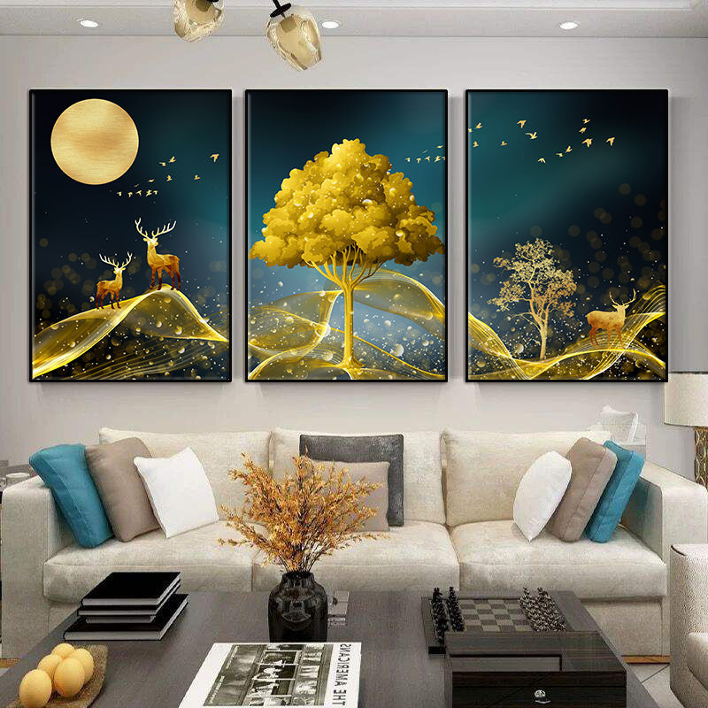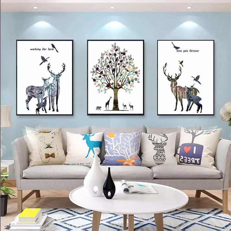 トップ ステッカー壁紙 リビング装飾画北欧スタイルのソファの背景壁の壁画現代簡単なリビングルームのレストランは、壁掛けの3つの壁の絵を描いています。