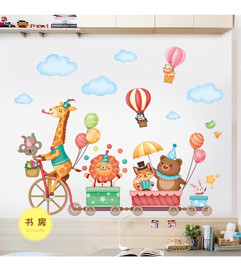 欧仕図壁貼自粘可愛いキャラクターの子供部屋シール赤ちゃんの部屋の壁面には幼稚園diy装飾壁紙が貼ってあります。自転車に乗る動物(大)を取り除くことができます。