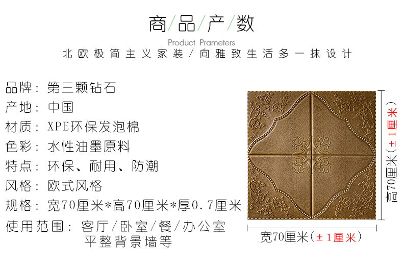 第三個のダイヤモンドの壁紙を貼り、リビングルームの背景壁に貼り付けて、ソフトパックシールを貼ります。