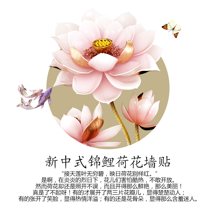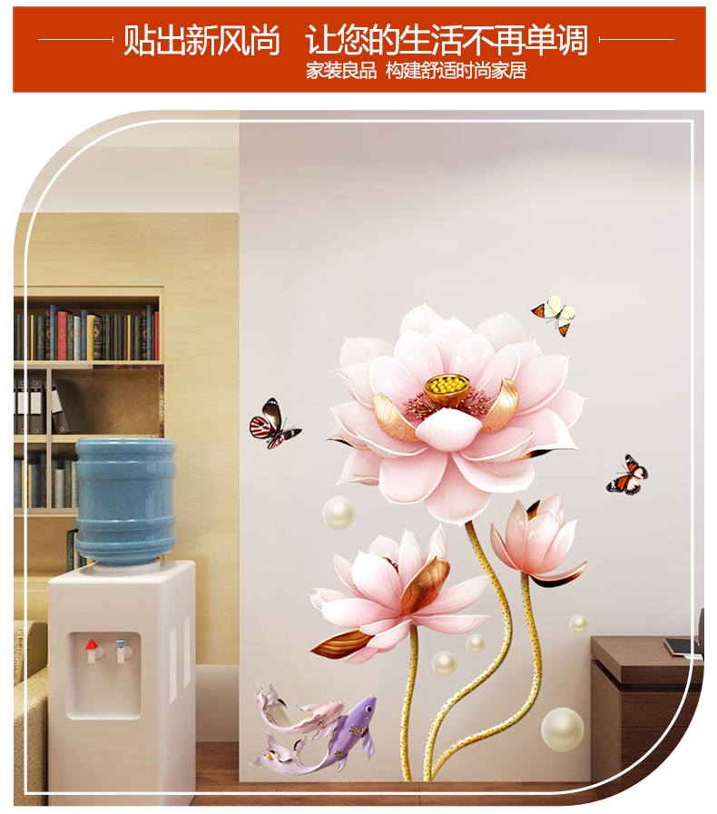 壁の色彩のハスの花の壁に暖かい壁を貼って、リビングのソファーの背景の壁紙を描いて、部屋の装飾品は自分で寝室にくっつきます。