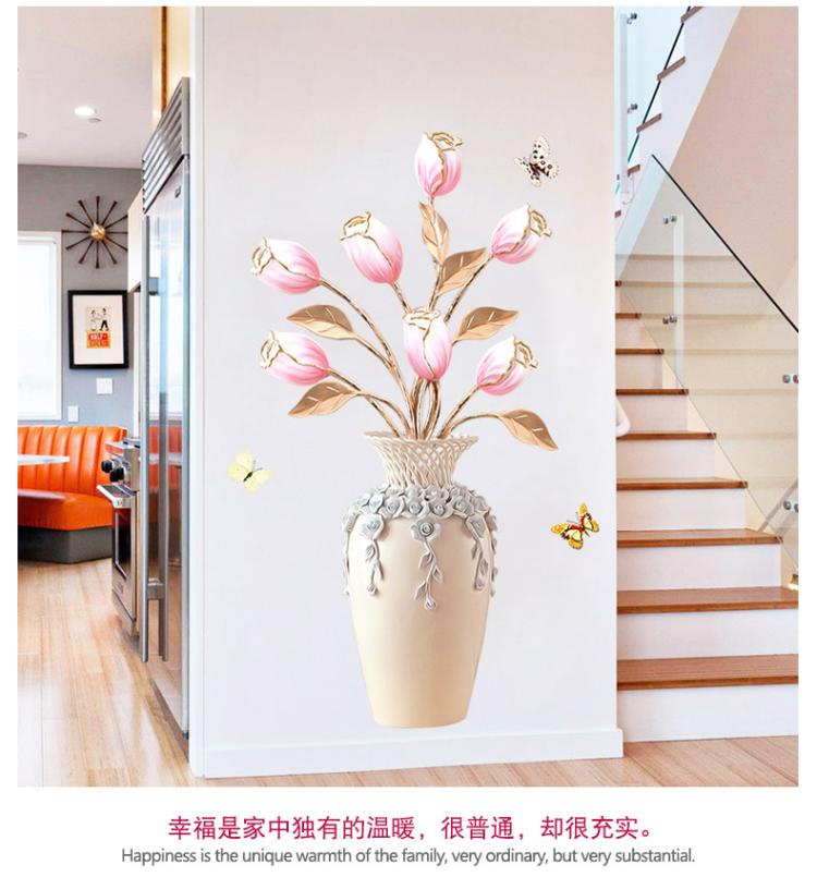 寧雅軒の花瓶の壁は玄関に貼り付けて壁紙のリビングルームに貼り付けて部屋の壁面の暖かい壁に花のシールを貼っています。