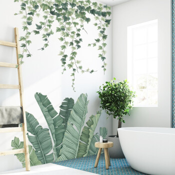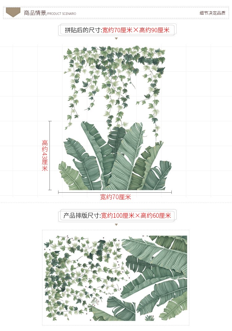 欧仕図ins壁は自分で貼るのが大規模の藤のつるの植物の壁が貼ってから暖かい客間の寝室の壁の装飾のステッカーの廊下のガラスの壁紙の芭蕉の葉のつるの葉(大きい)を貼ります。