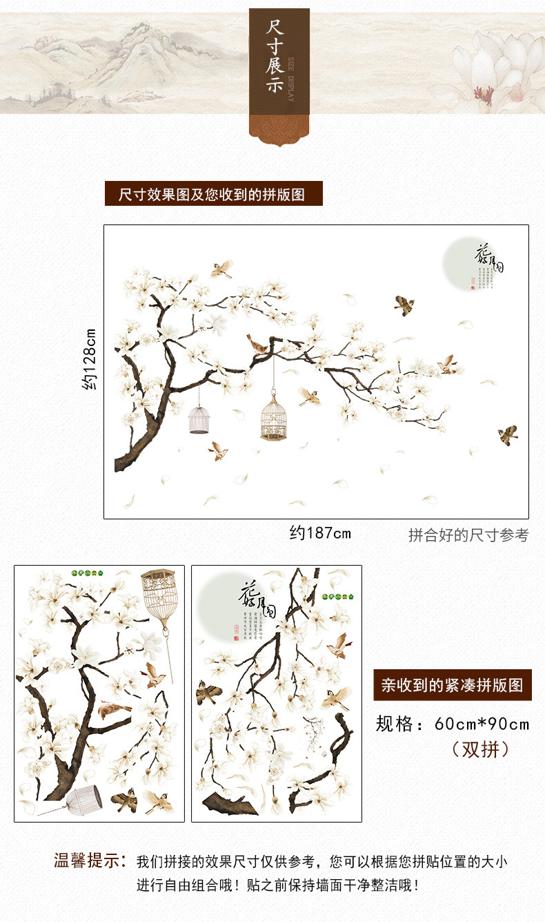 舽中国風の壁に貼って、寝室の壁画のシールを貼って、暖かい枕元の壁にアイデア部屋の壁紙を飾ります。