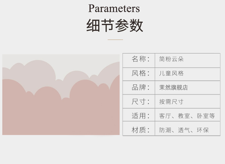 | 商品名称 | 米家(MI)エコホーム同款子供部屋壁紙ガールズシンプルモダン壁布軽贅沢プリンセス風ピンク雲寝室ベッドヘッドバック壁紙シームレス厚め不織布/平方 |