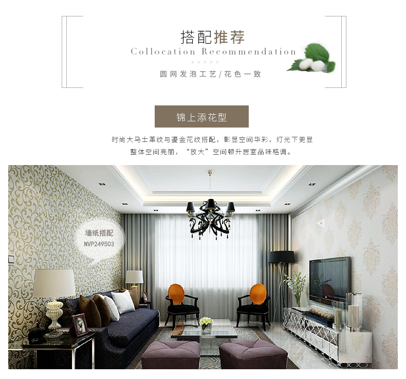 玉蘭欧式不織布壁紙リビンガー寝室テレビ背景壁紙天蚕糸工芸nvp 264202【写真価格ブランド見積】-