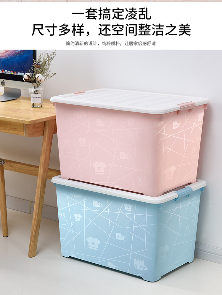【訪問客100 L 2個入り】訪問客FK収納箱100 L 2個にブルー+ピンク北欧風プラスチック収納箱布団服収納箱印紙玩具整理箱付きの蓋収納箱【相場見積り価格評価】-京東